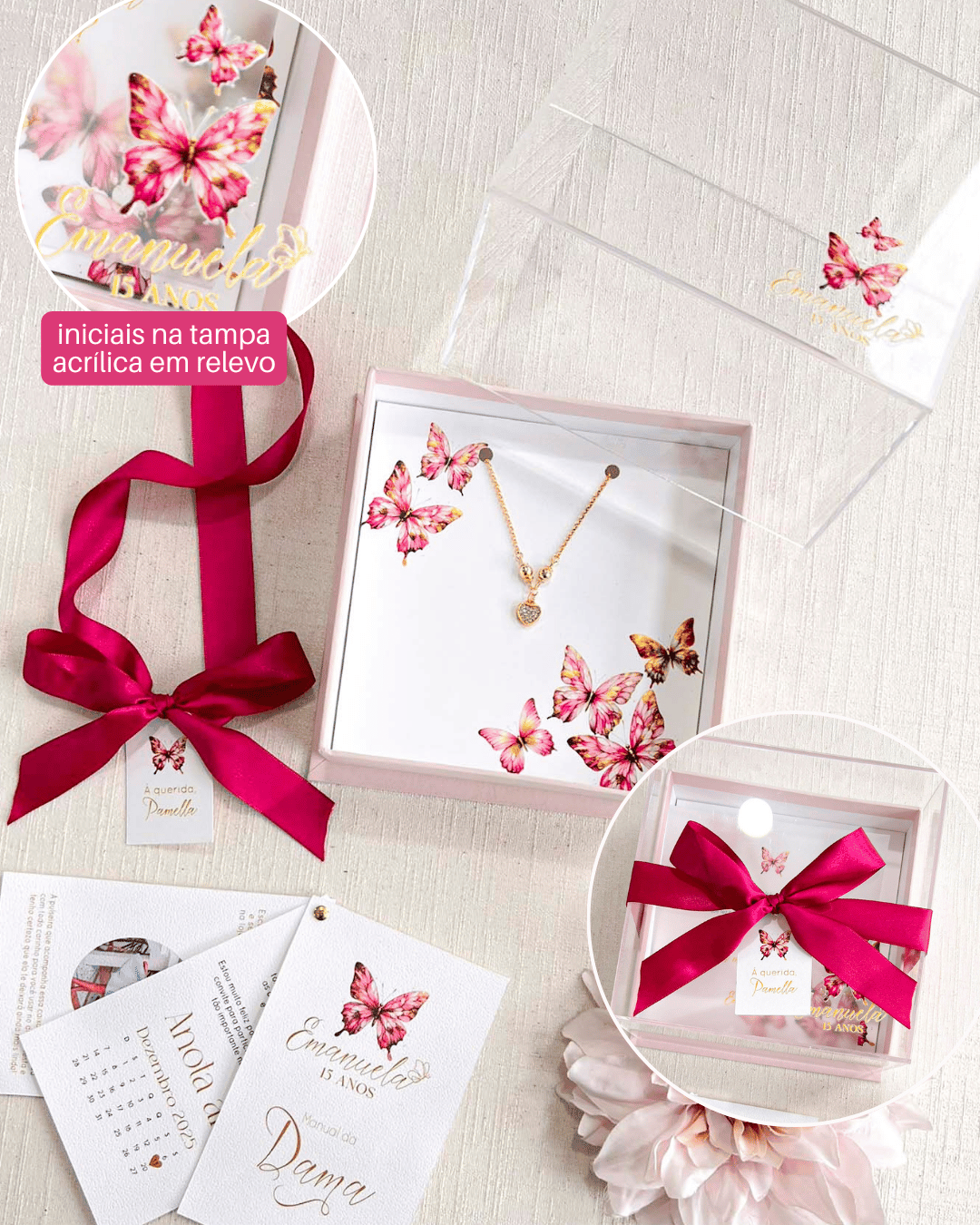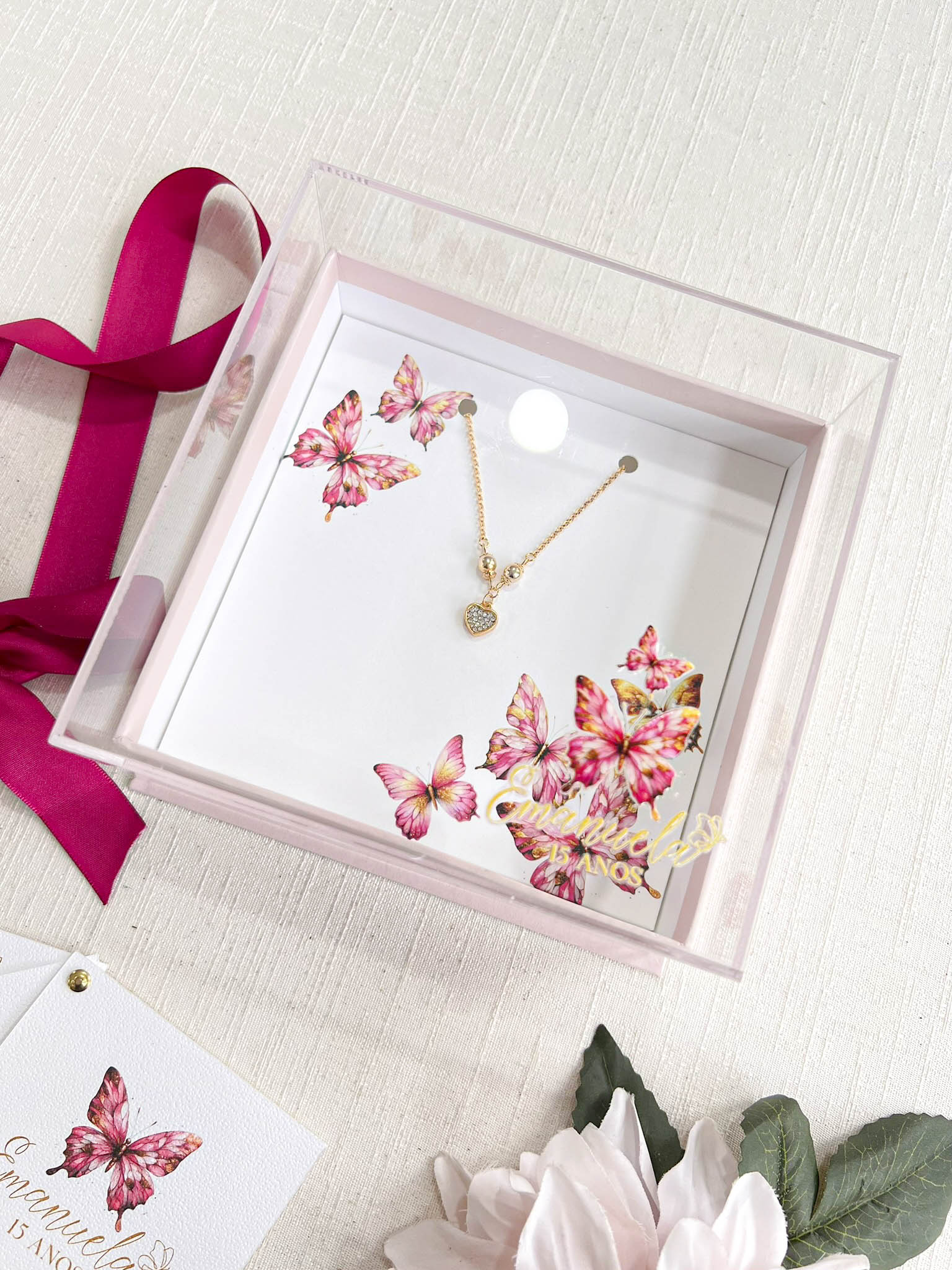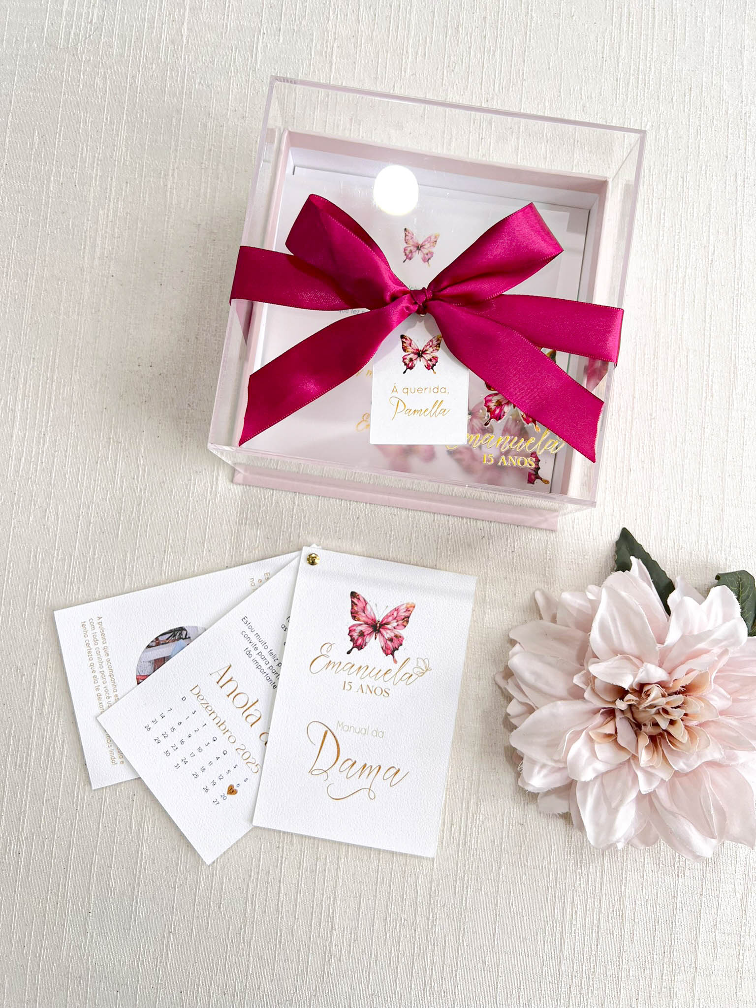 Caixa Acrílica Amiga/Madrinha 15X15x8 (Cartonagem + TAMPA ACRÍLICO) – Pulseira