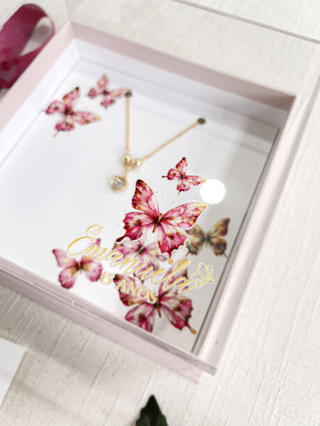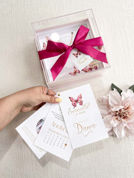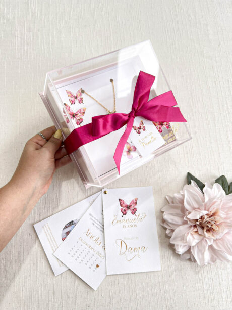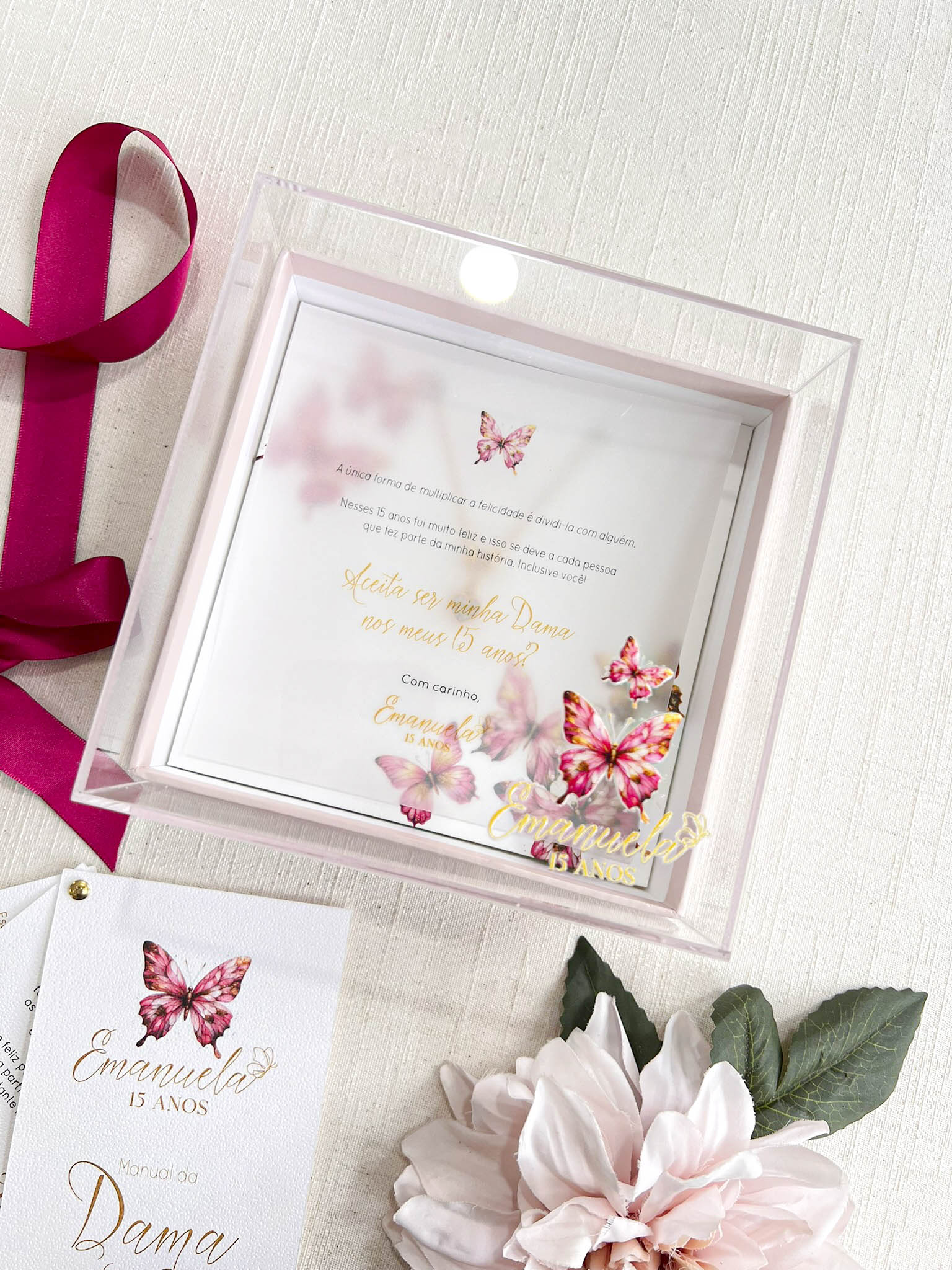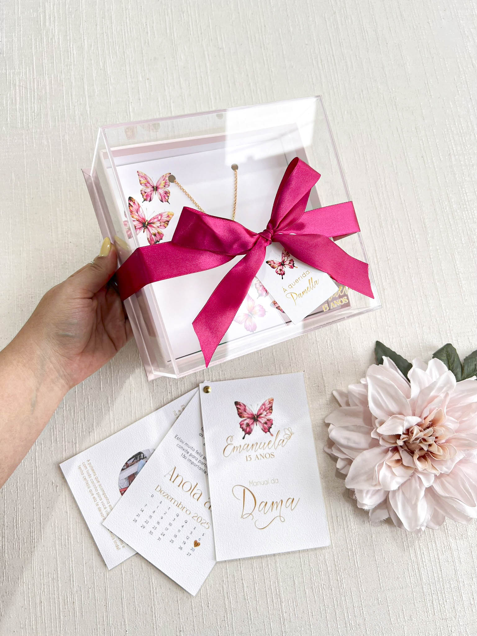 Caixa Acrílica Amiga/Madrinha 15X15x8 (Cartonagem + TAMPA ACRÍLICO) – Pulseira