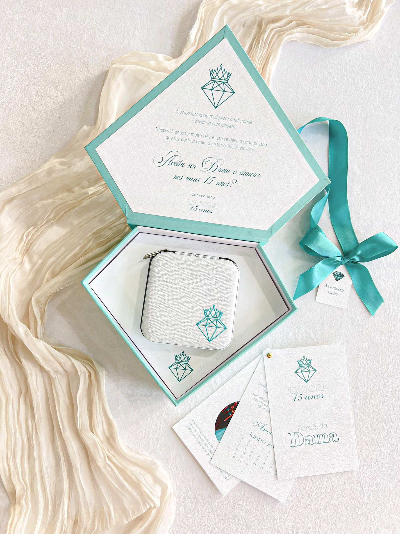 Caixa Diamante (Cartonagem) – Colorida+Metalizado – PORTA JOIA + MANUAL