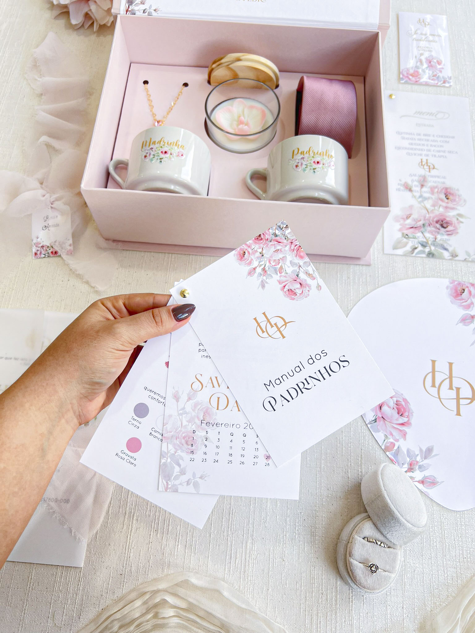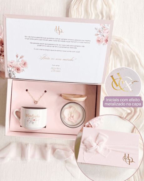 Um presente completo, sofisticado e totalmente personalizável, pensado para refletir a identidade do seu casamento.