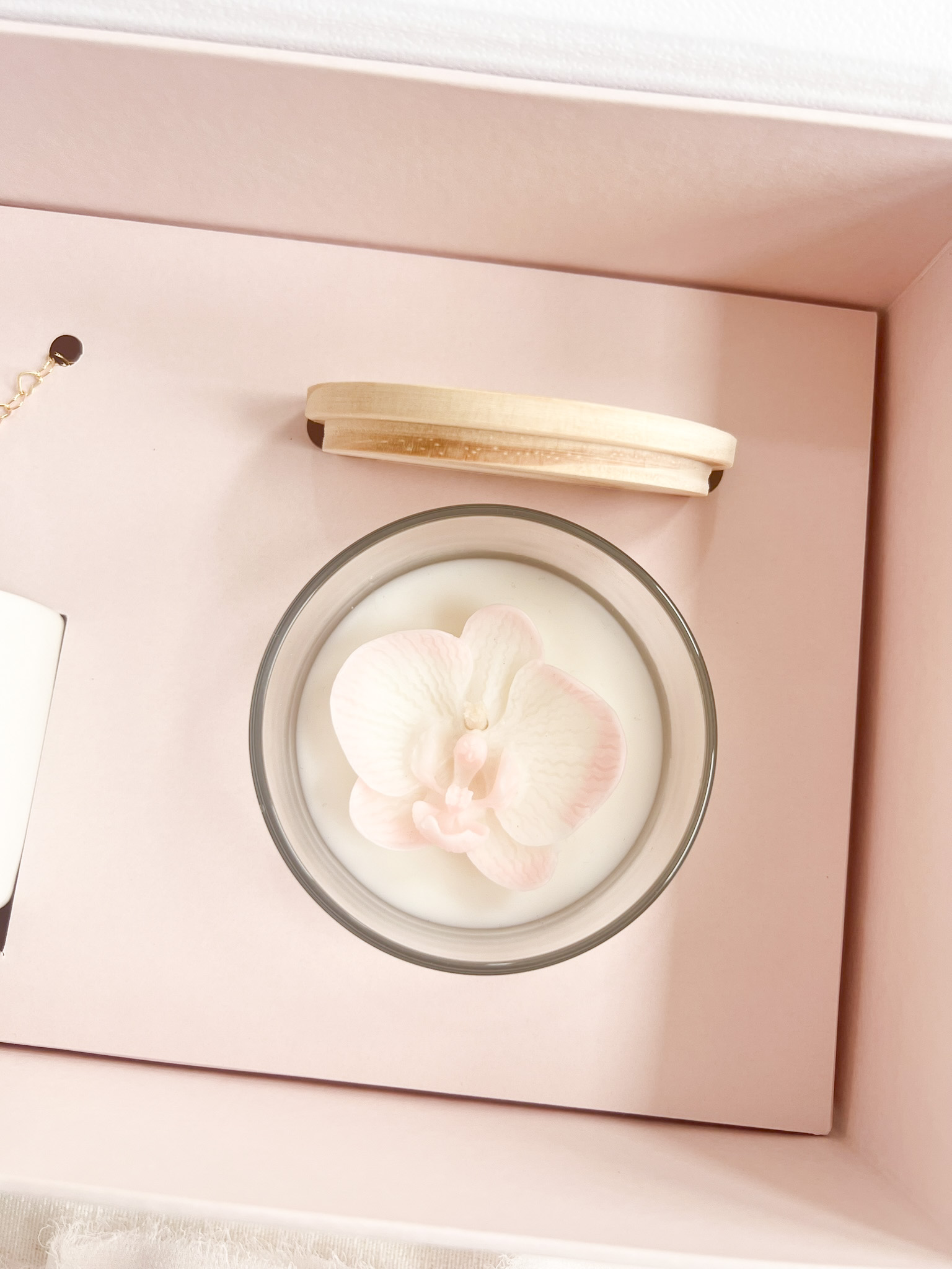 1 UN- VELA AROMÁTICA 150ML COM FLOR DESMOLDADA (MODELO: Orquídea ou outras opções disponíveis) (COR A DEFINIR)