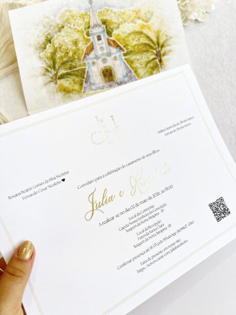 – Cartão convite OFF-WHITE texturizado 240G – METALIZADO MONOGRAMA + NOME CASAL