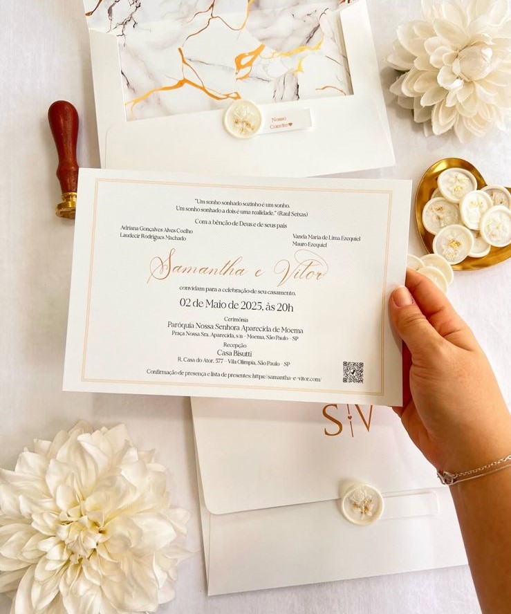 Convite Carta ABA RETA- Texturizado Estampado-Impressão externa- Lacre de Cera