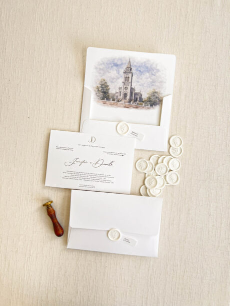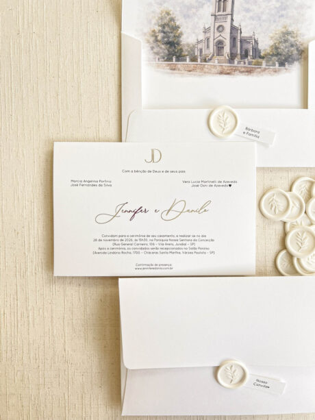 Convite Carta ABA RETA – Texturizado Estampado – Lacre de Cera – COD. 222-L