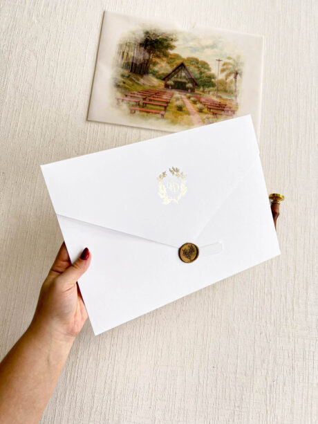 – Envelope carta Tradicional GRANDE (G) texturizado off-white 250g- COM METALIZADO MONOGRAMA EXTERNO