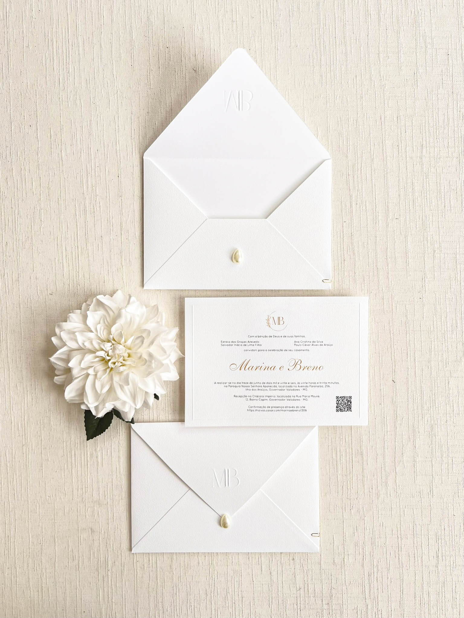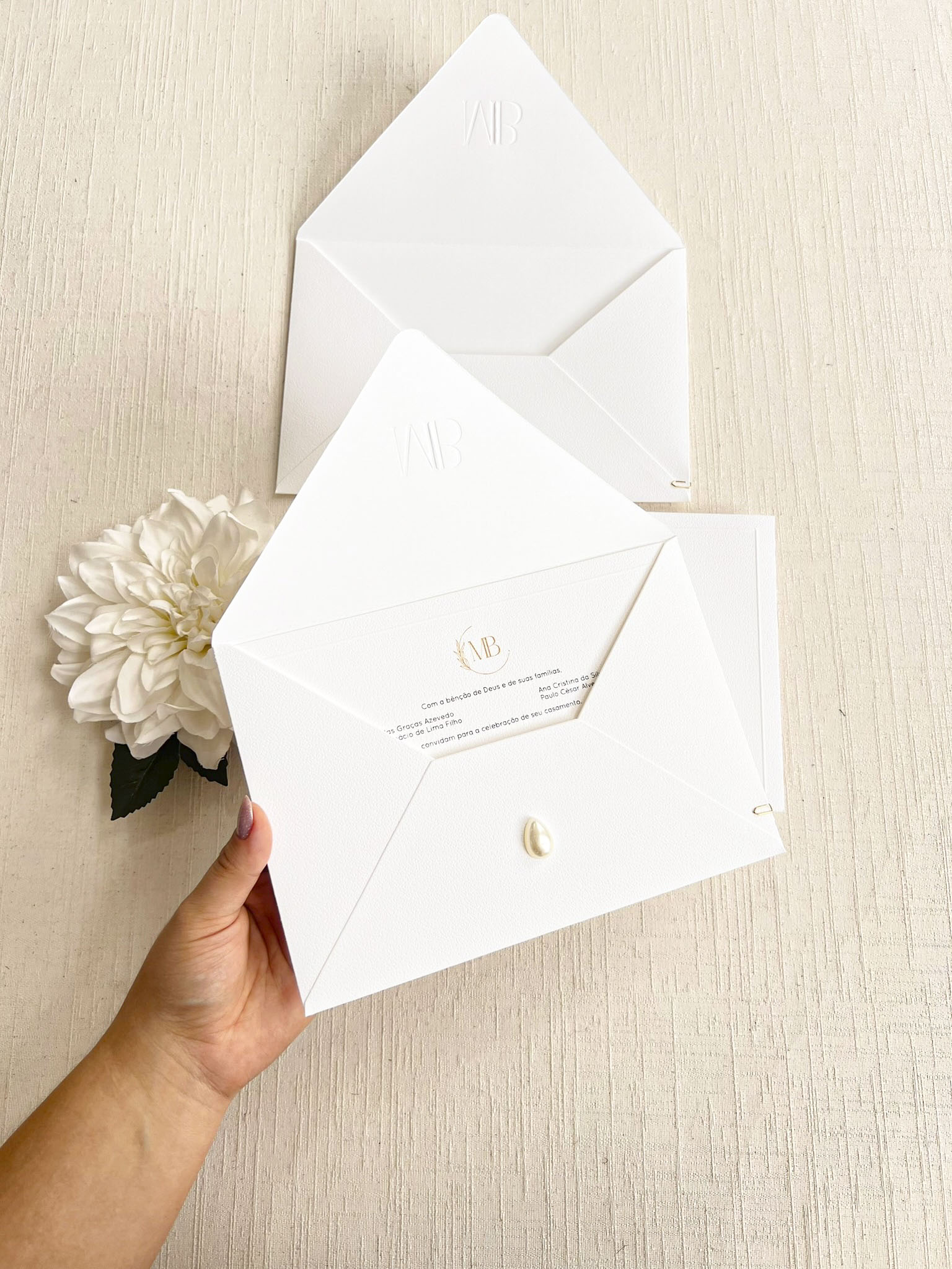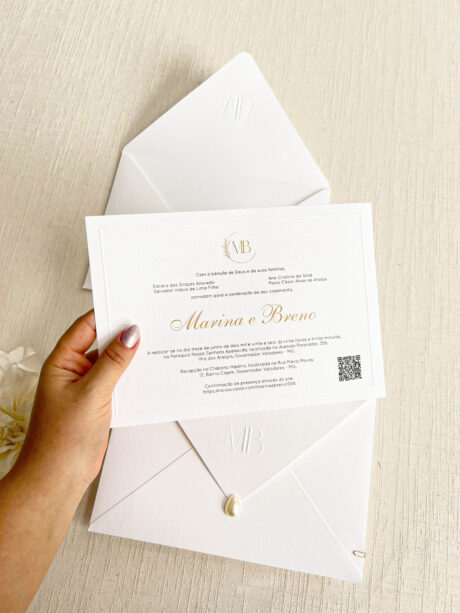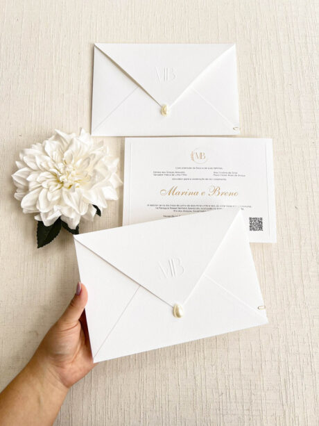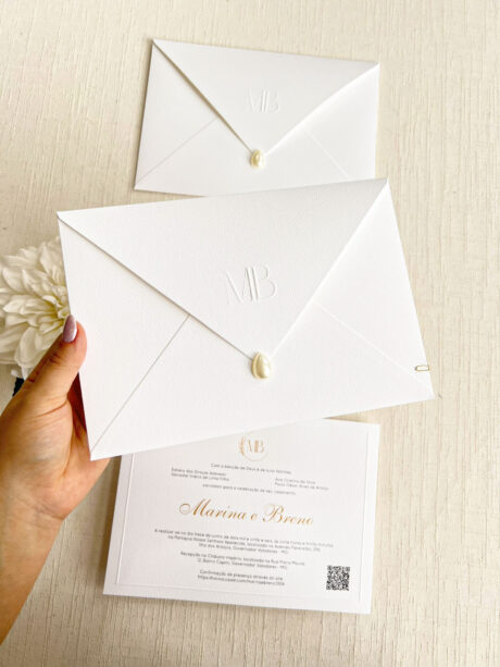 Convite Carta Tradicional – Texturizado – Relevo Seco – Pérola Gota