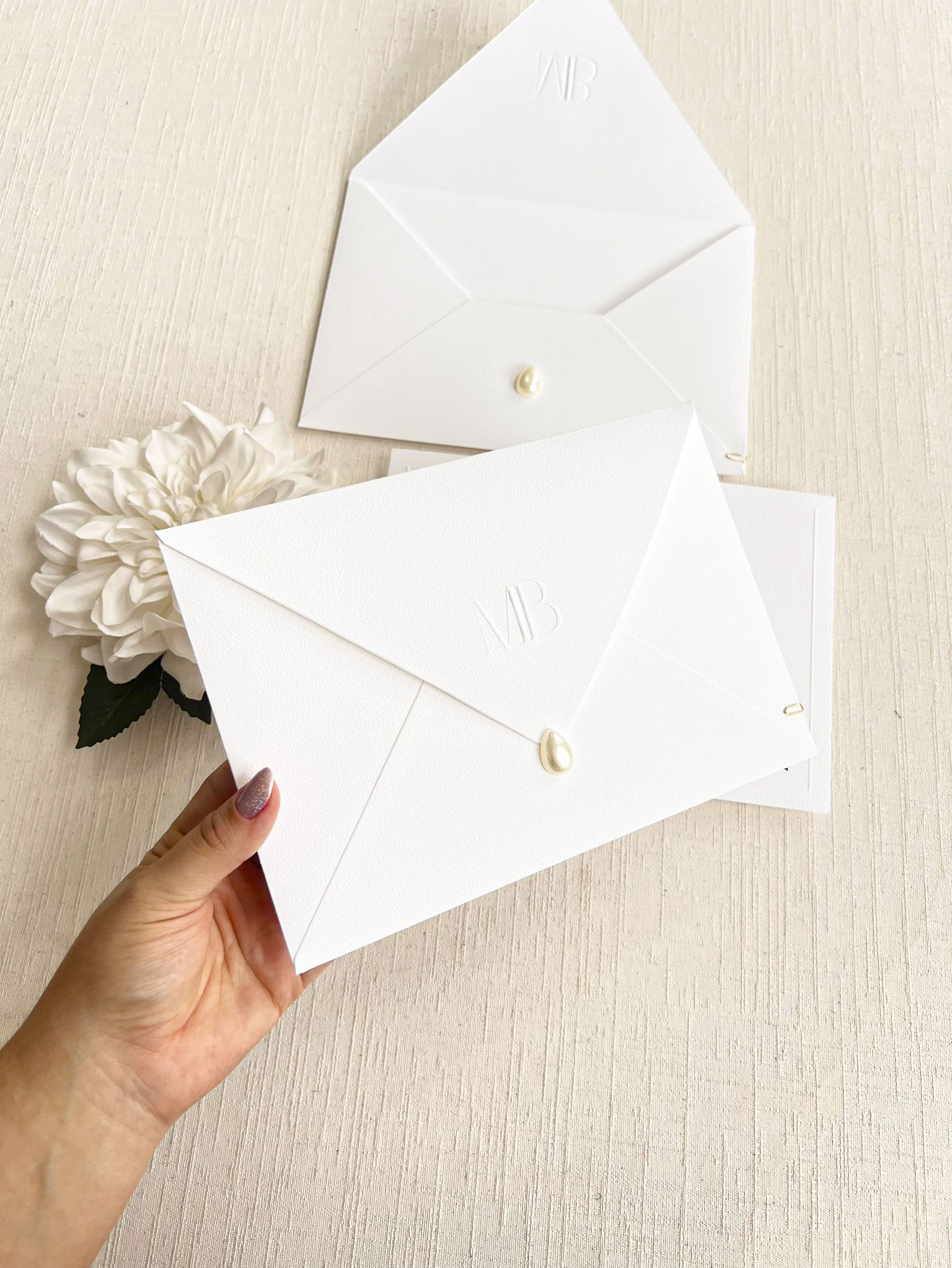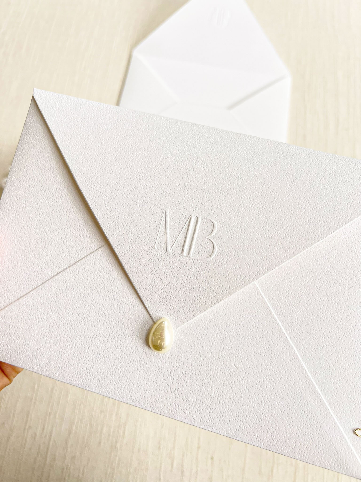 – Envelope carta Tradicional texturizado 240g- COM INICIAIS DO CASAL EM RELEVO SECO