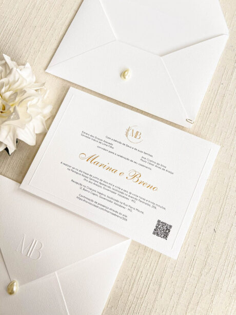 – Cartão convite texturizado 240g com impressão tradicional e MOLDURA EM RELEVO SECO
