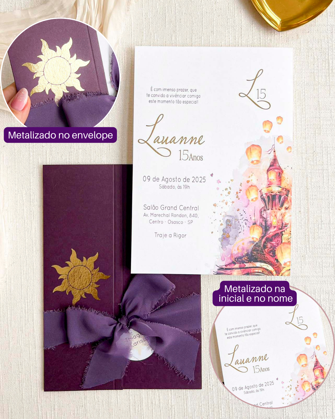 Convite Janela Florence – Metalizado Env e Encarte (Nome e Inicial) – Fita