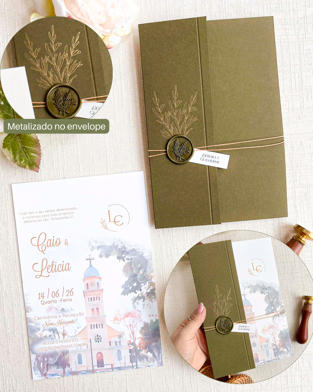 Convite Janela Florence – Metalizado Envelope – Cordão e Lacre