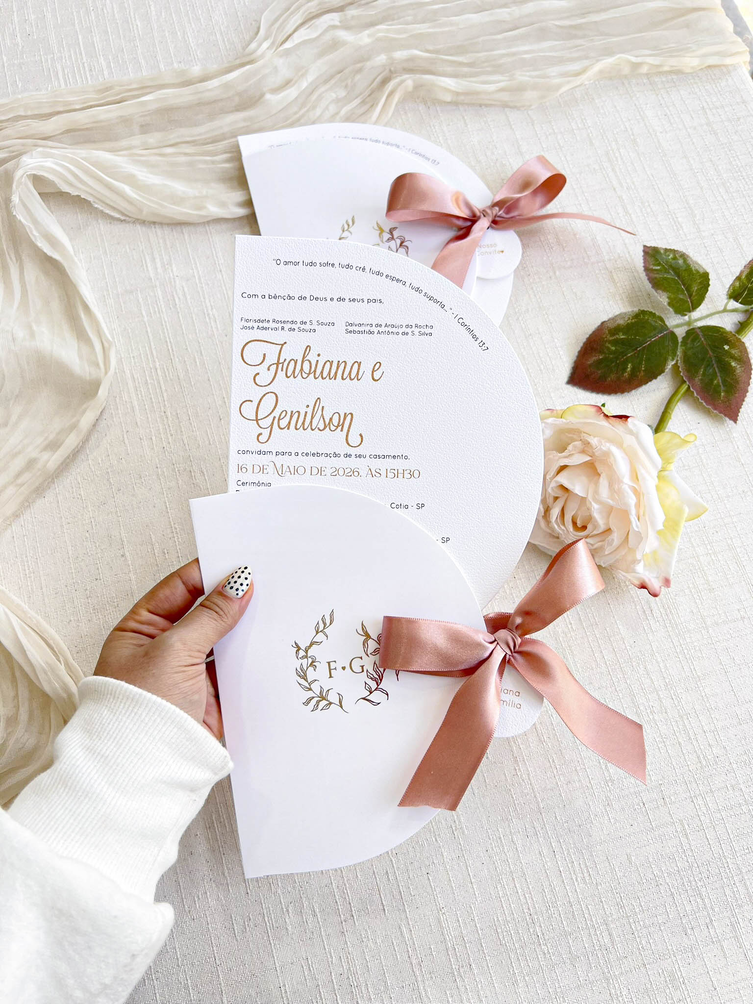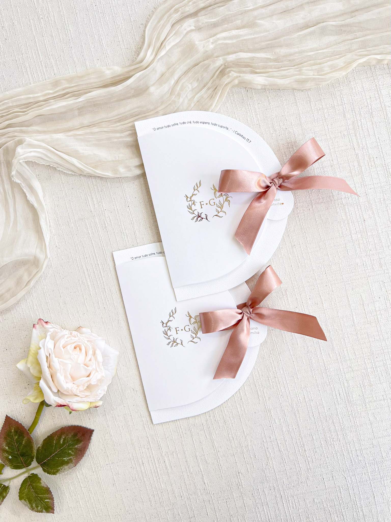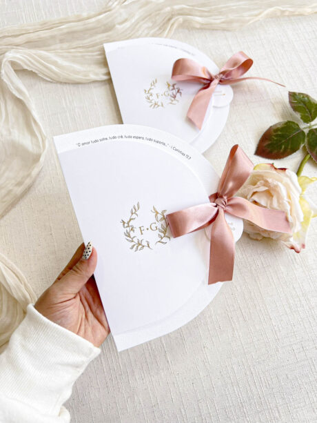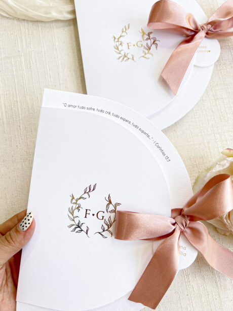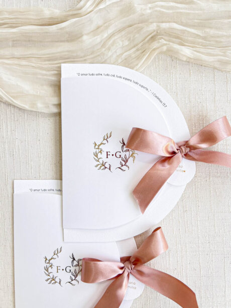 – Envelope com Recorte Oval Geométrico COLORIDO – Iniciais no envelope Metalizada (dourada)