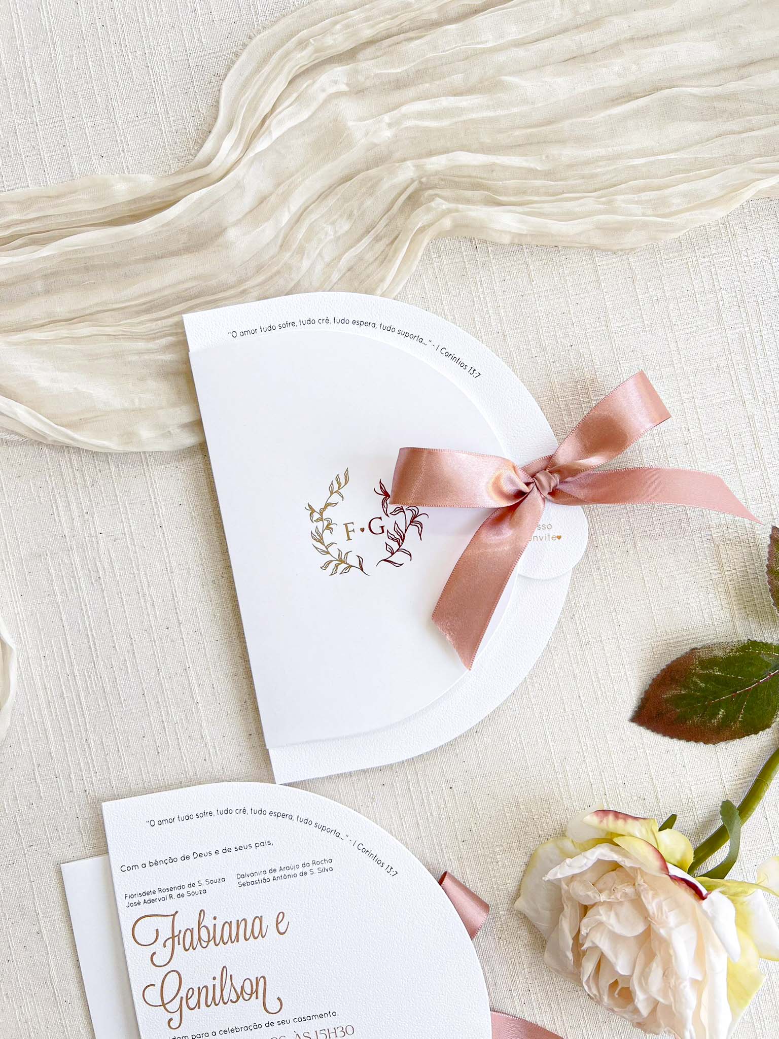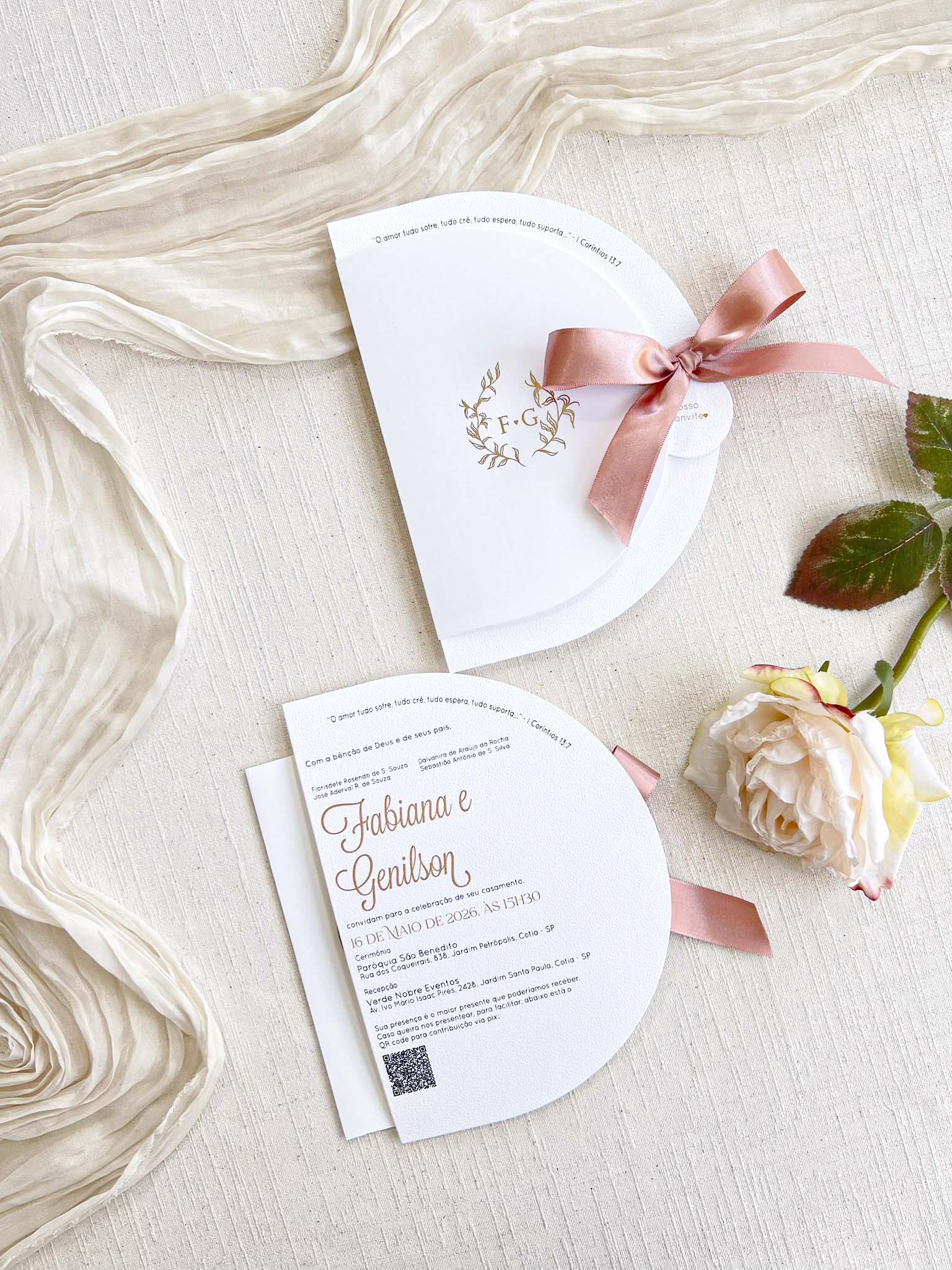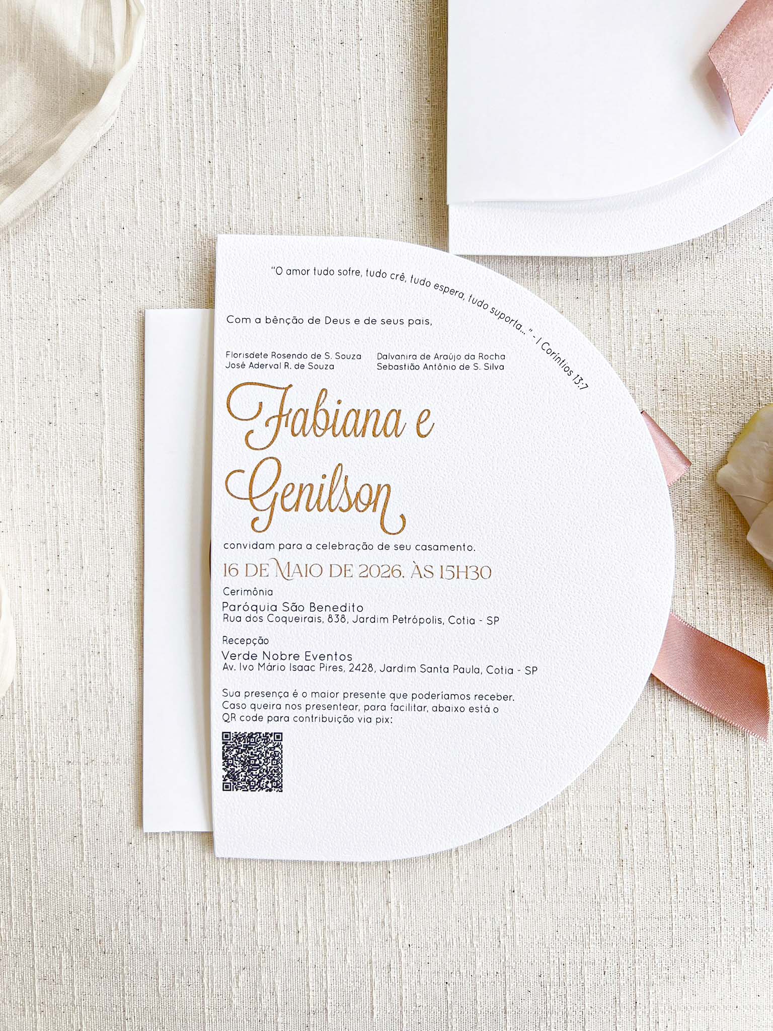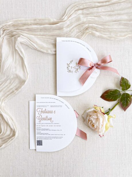 Convite Recorte Oval Geométrico Envelope Colorido – Iniciais env. Metalizada – FITA CETIM