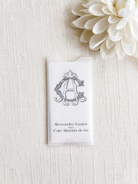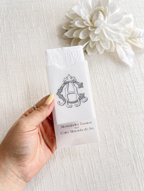 Acompanha lenço de papel e envelope em papel translúcido com estampa, conforme fotos