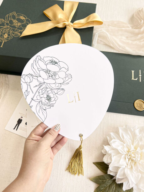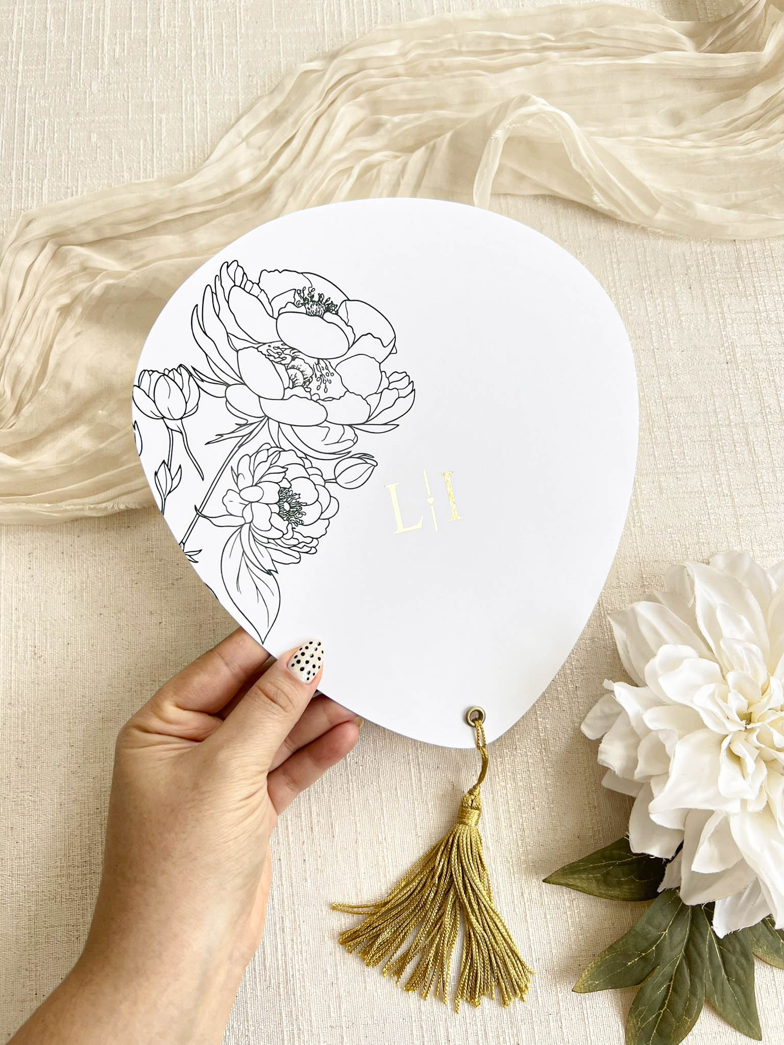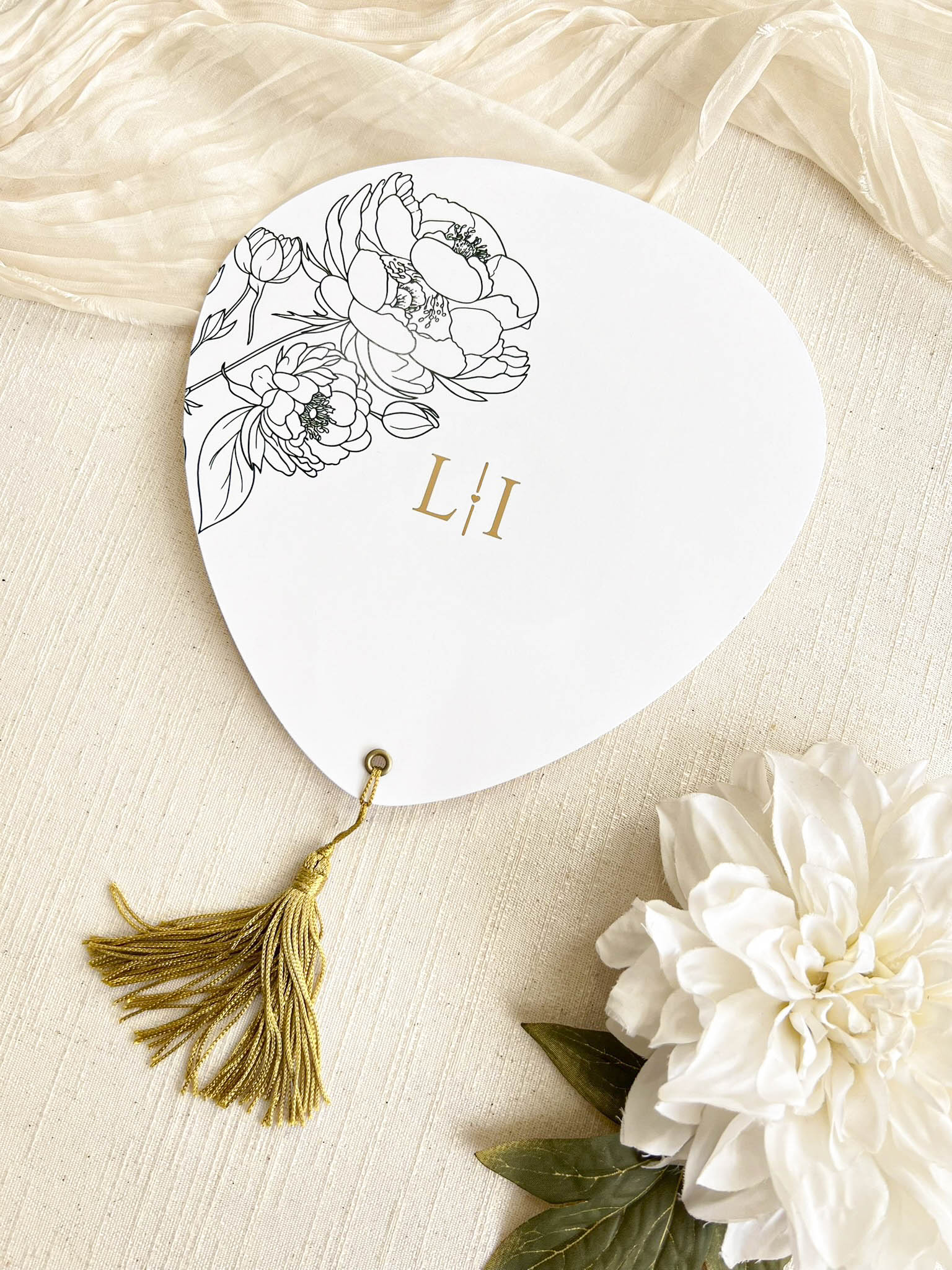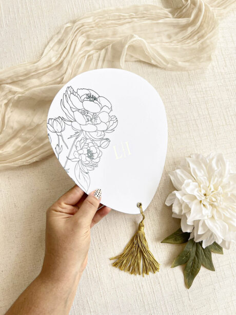 Leque Luxo de papel – Pingente artesanal + Iniciais Metalizado- COD. 246