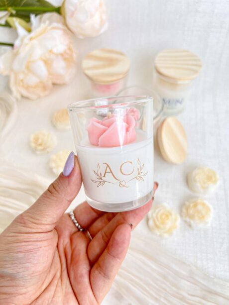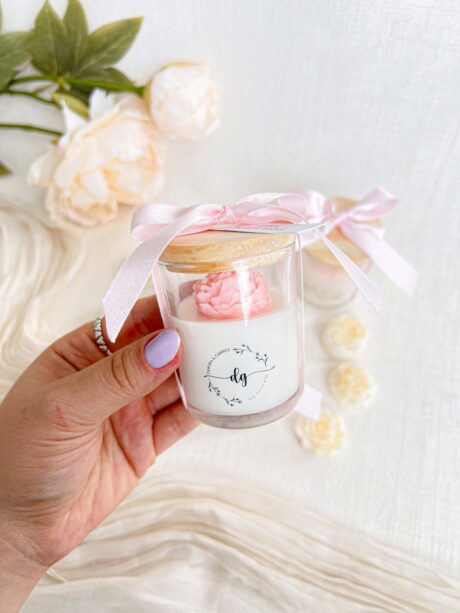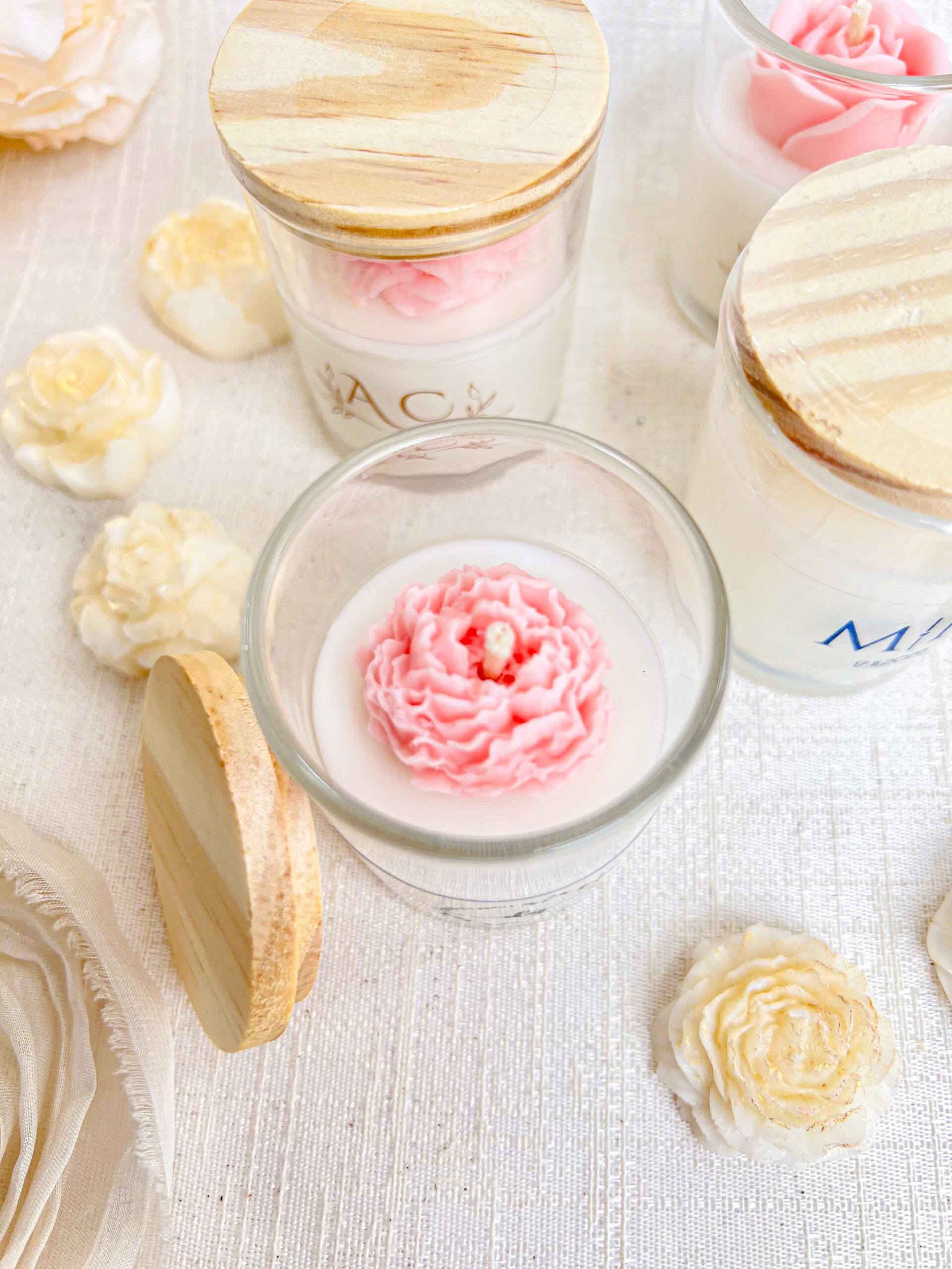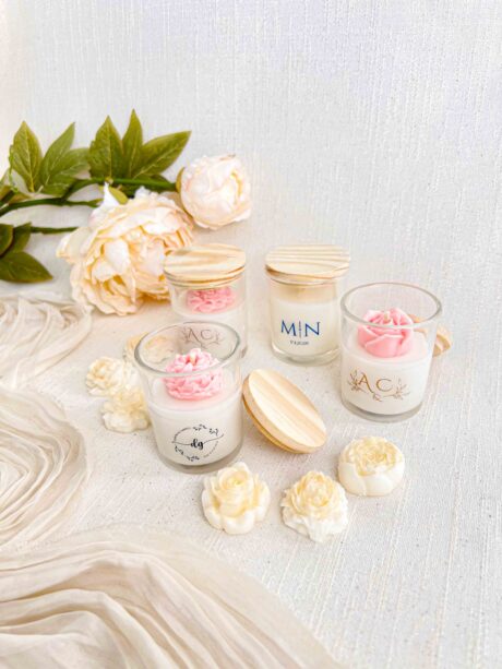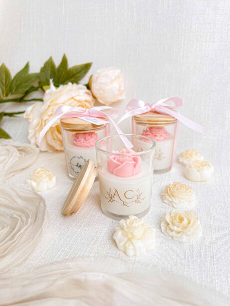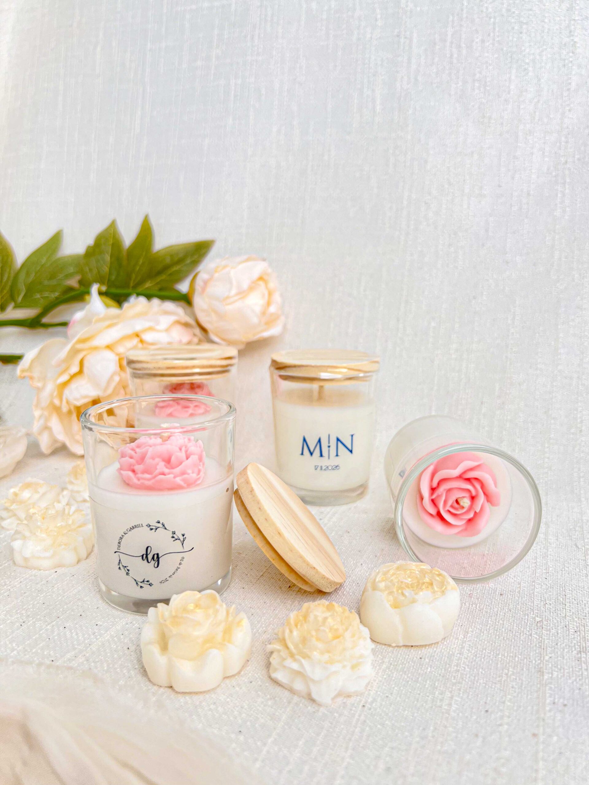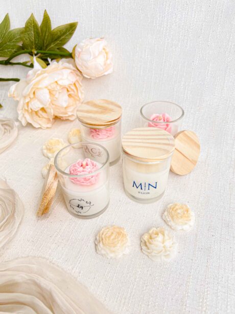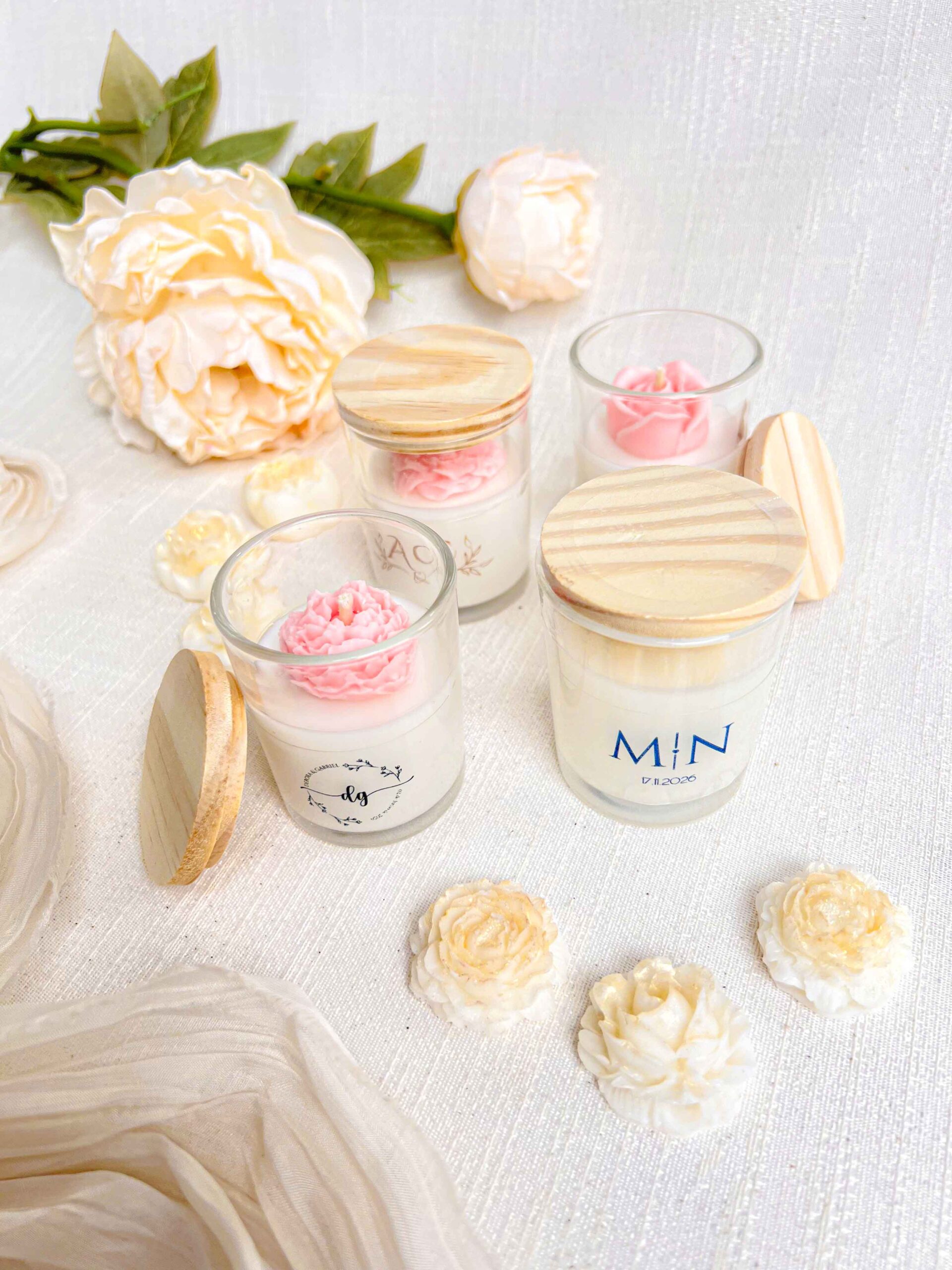 Vela Aromática Lembrancinha c/ flor desmoldada e Tampa- Personalizada – Copo 70ML