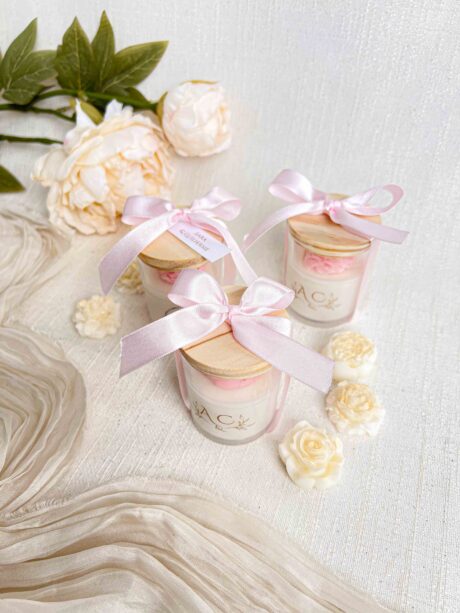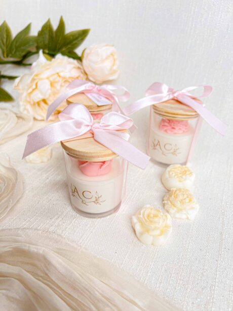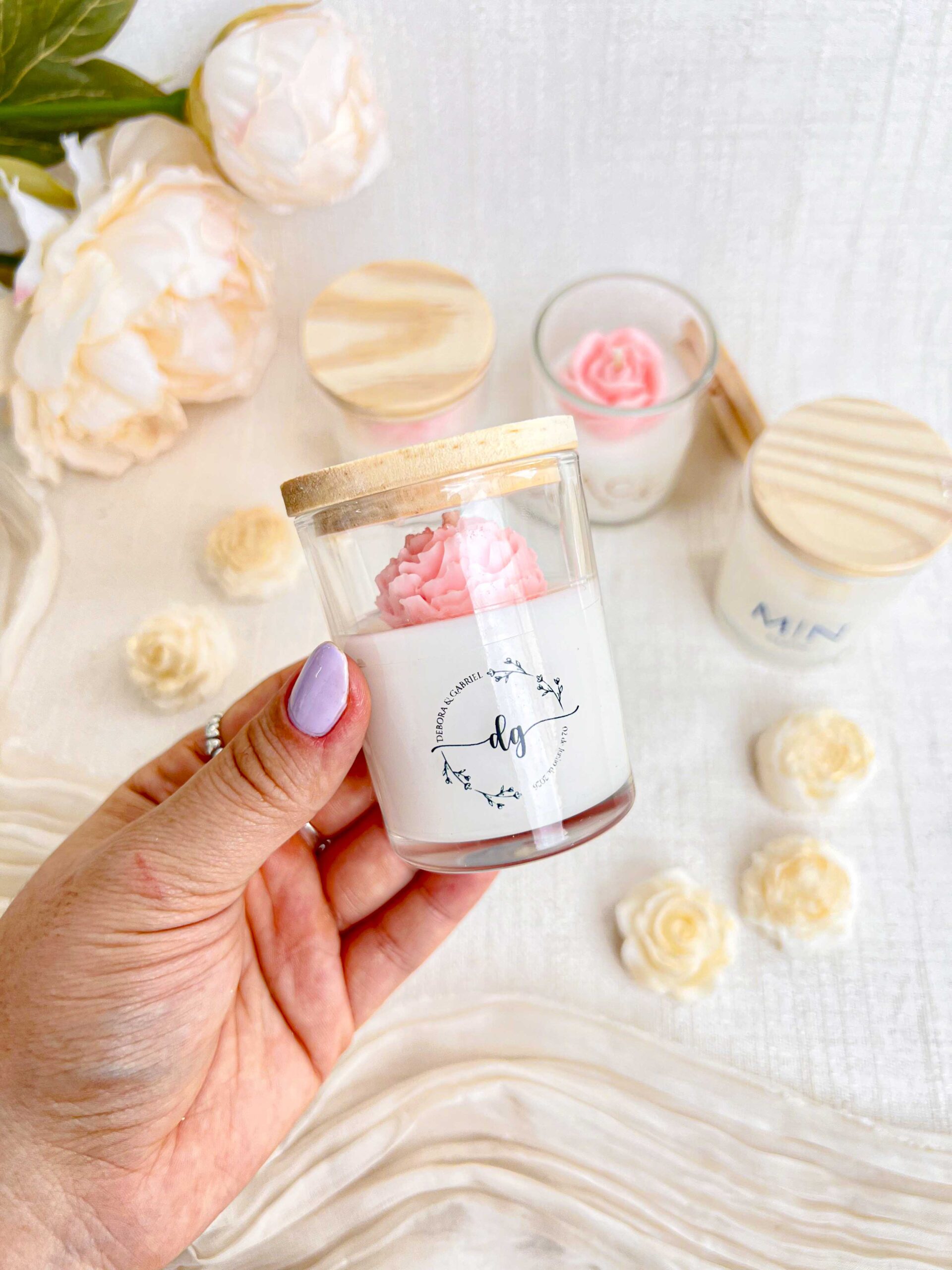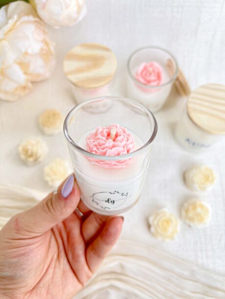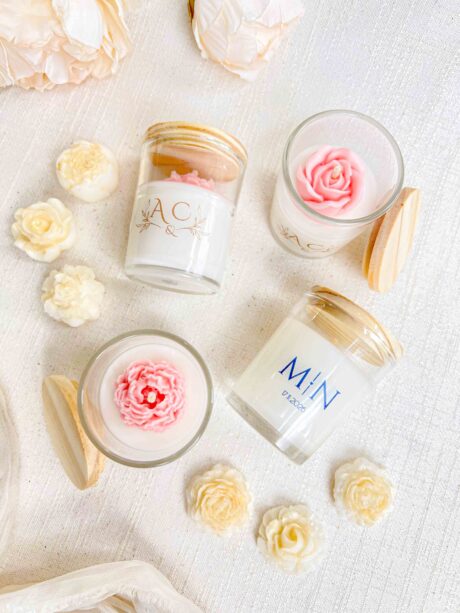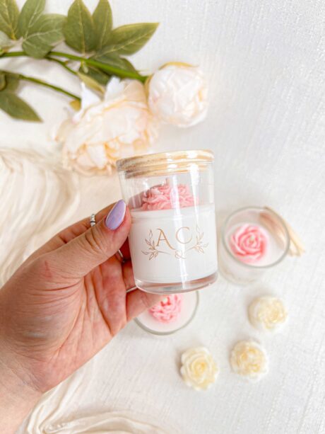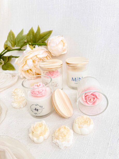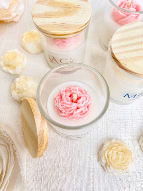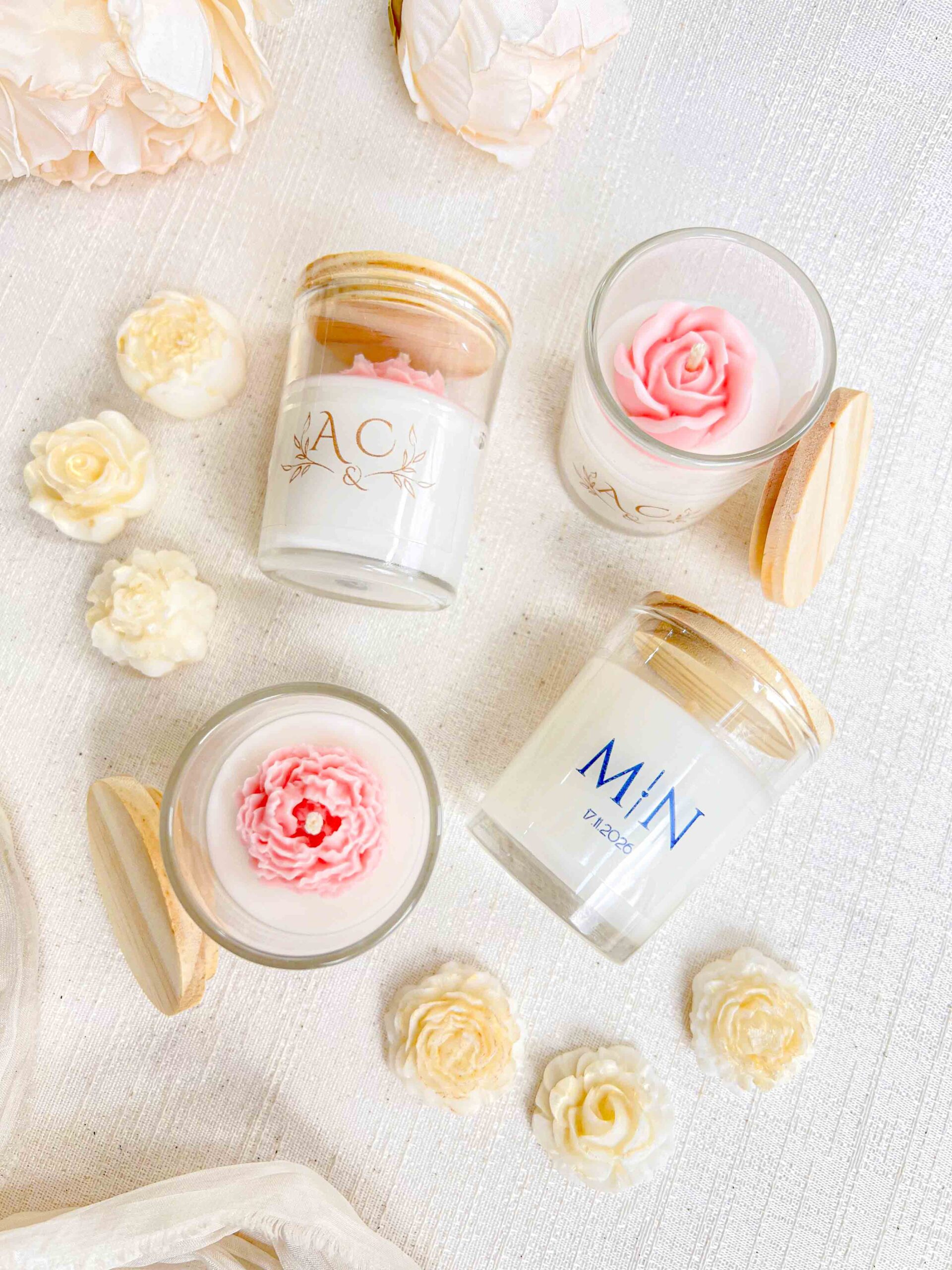Vela Aromática Lembrancinha c/ flor desmoldada e Tampa- Personalizada – Copo 70ML