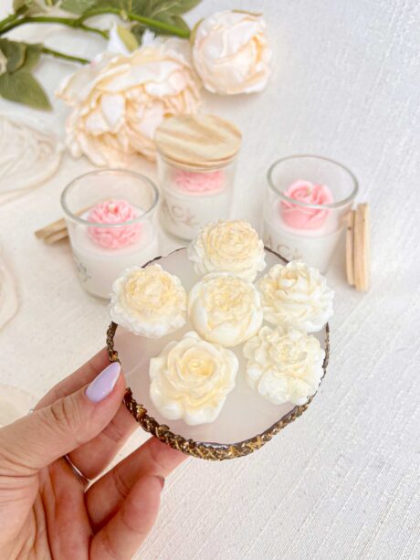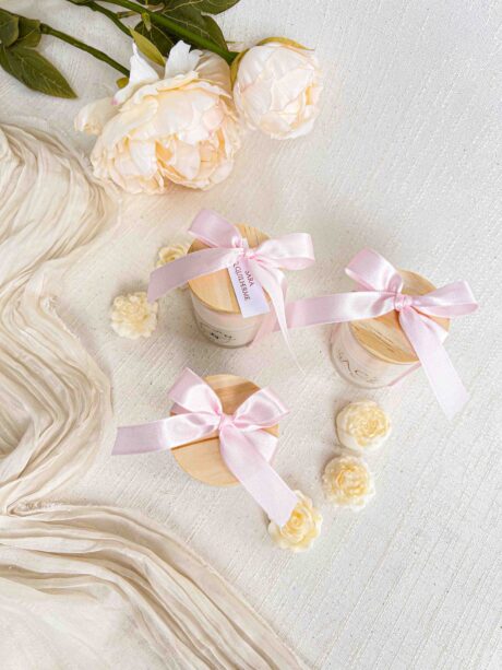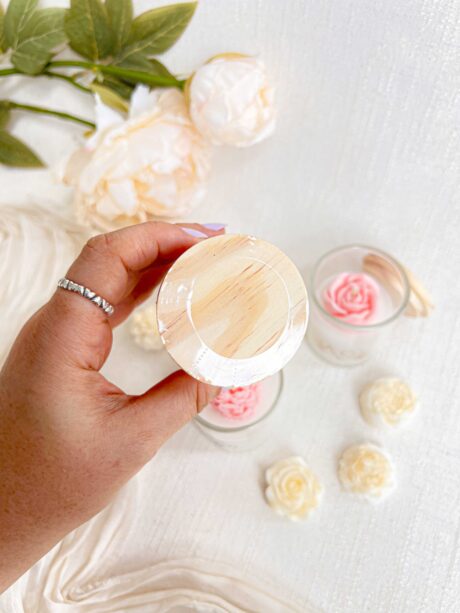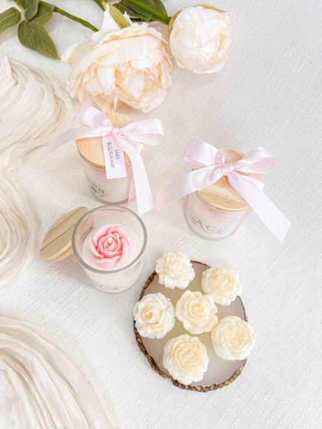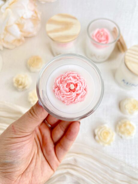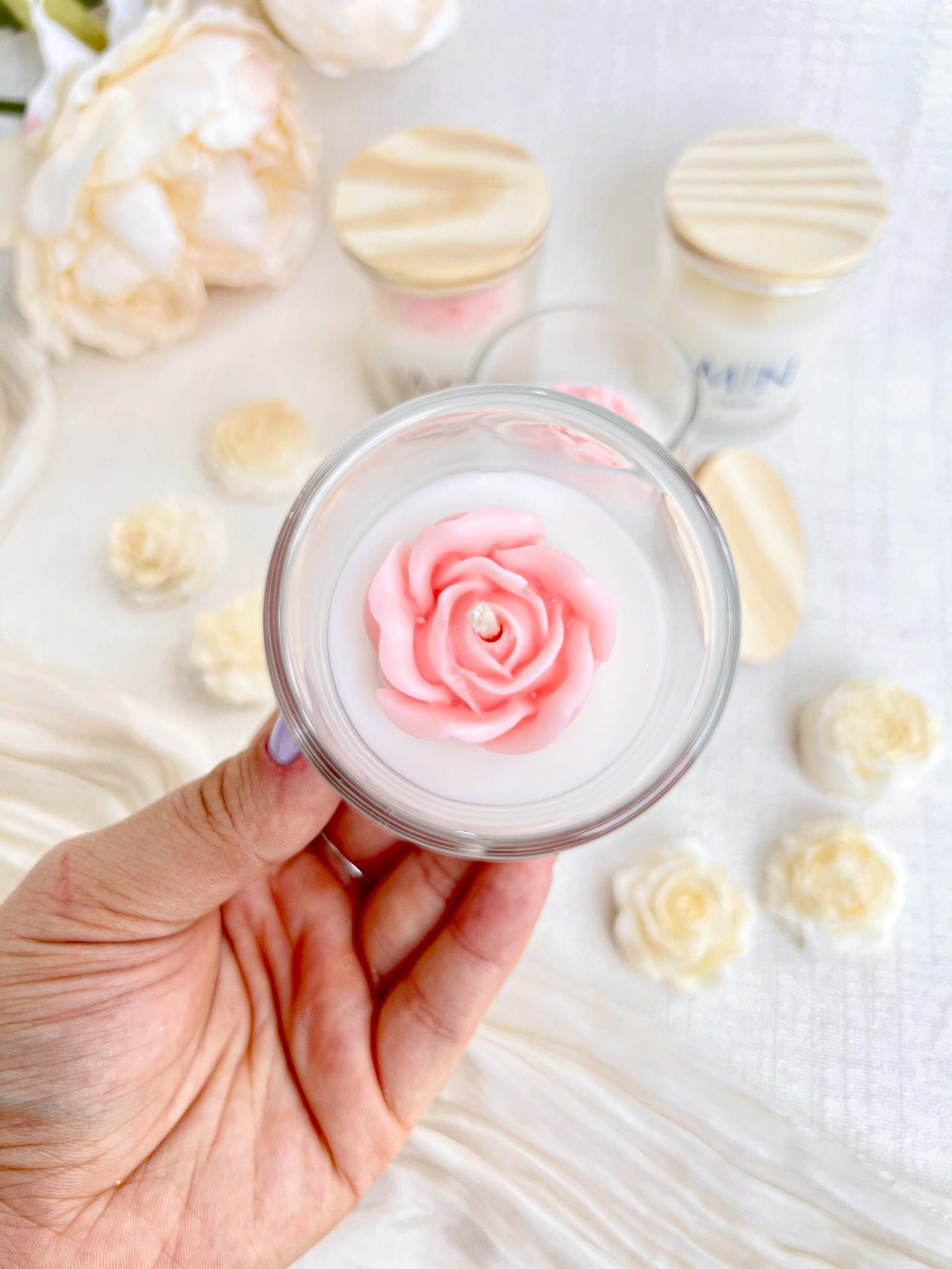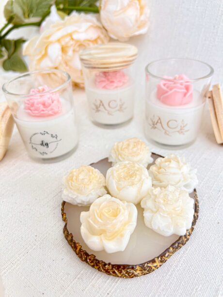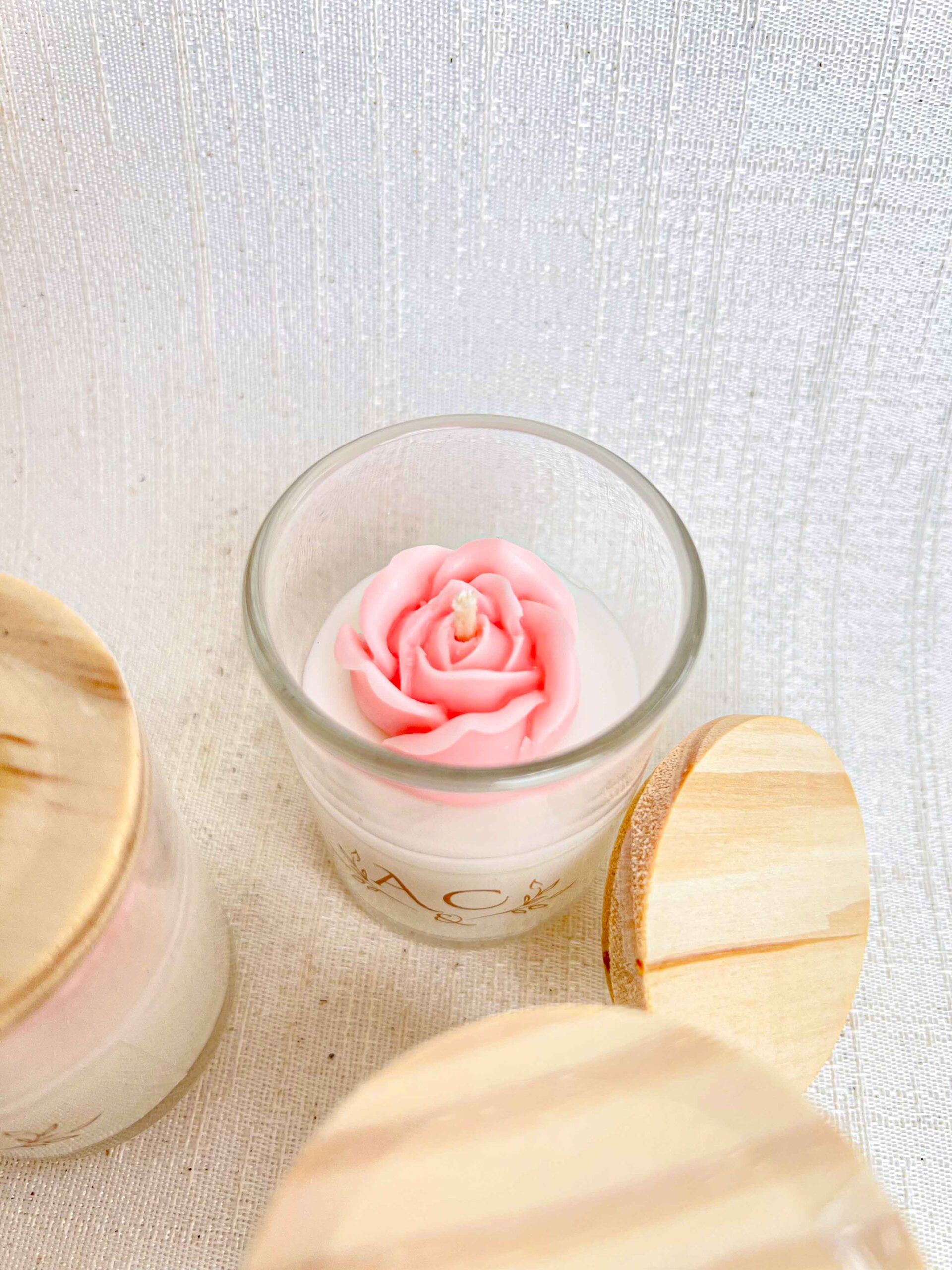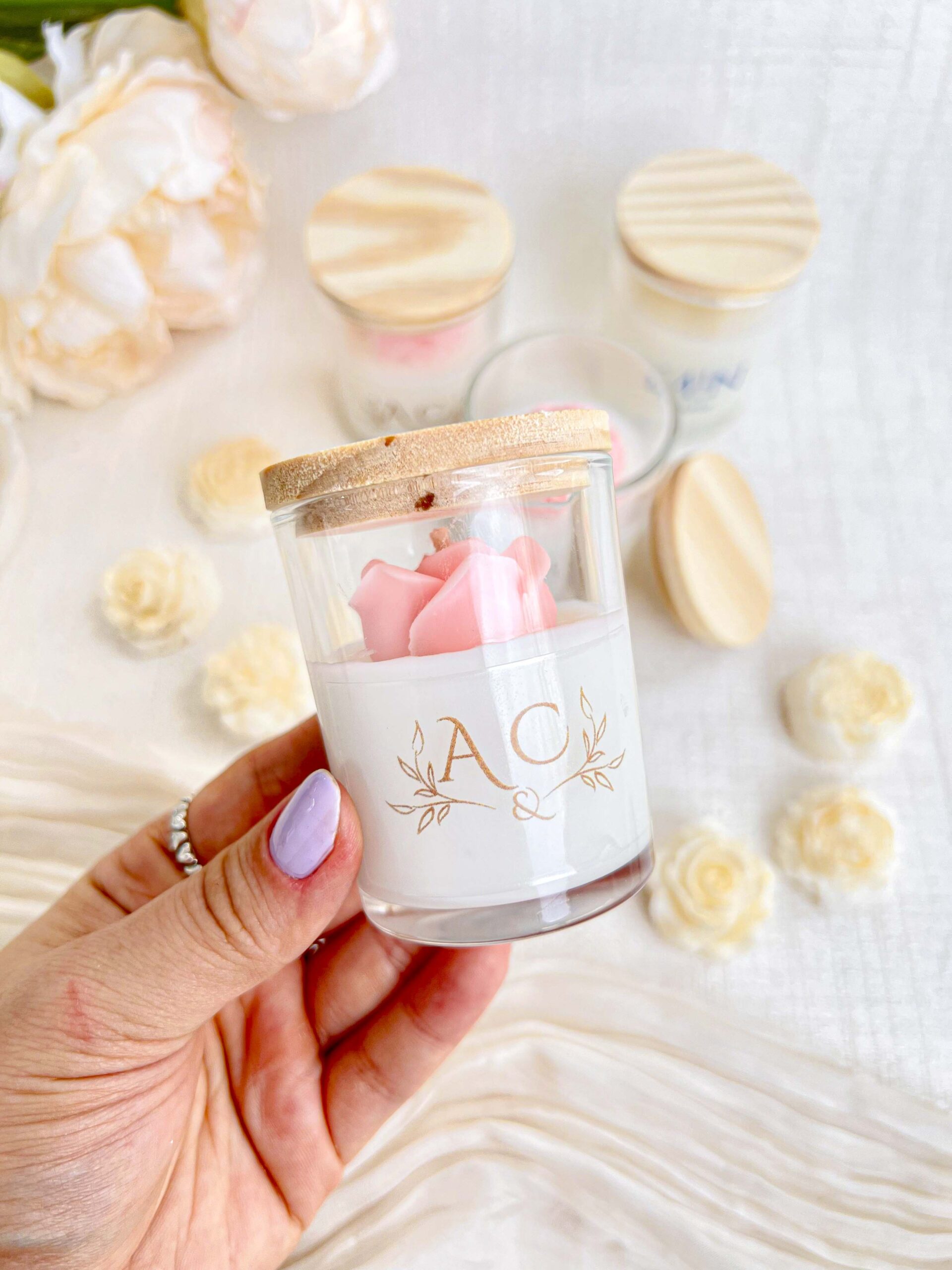 Vela Aromática Lembrancinha c/ flor desmoldada e Tampa- Personalizada – Copo 70ML