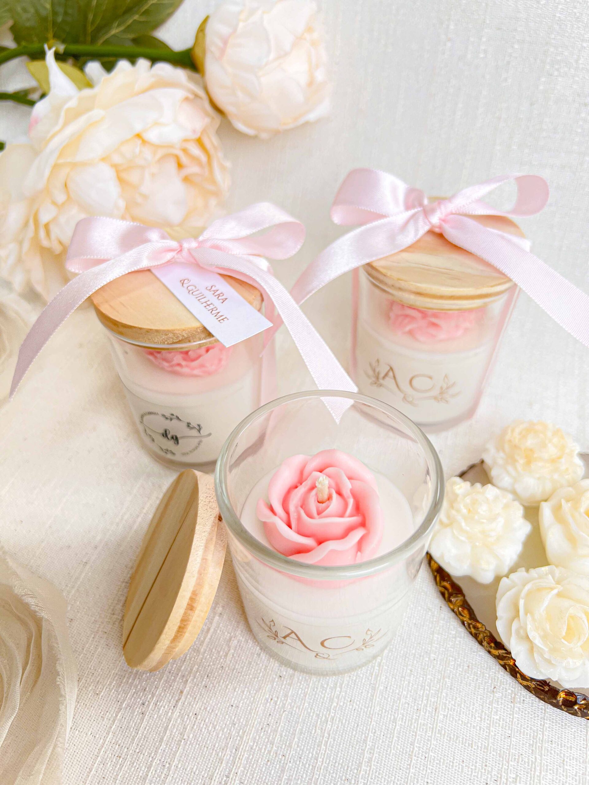 Encante seus convidados com nossas velas aromáticas artesanais, produzidas com cera de coco 100% vegetal em pote de vidro de 70ml. O acabamento é feito com delicadas flores desmoldadas no topo (você recebera o seu pedido com flores sortidas, são 8 flores no total e cada vela vai com uma e depois se repete, vira um jardim de flores lindo :), que dão um charme único à peça.